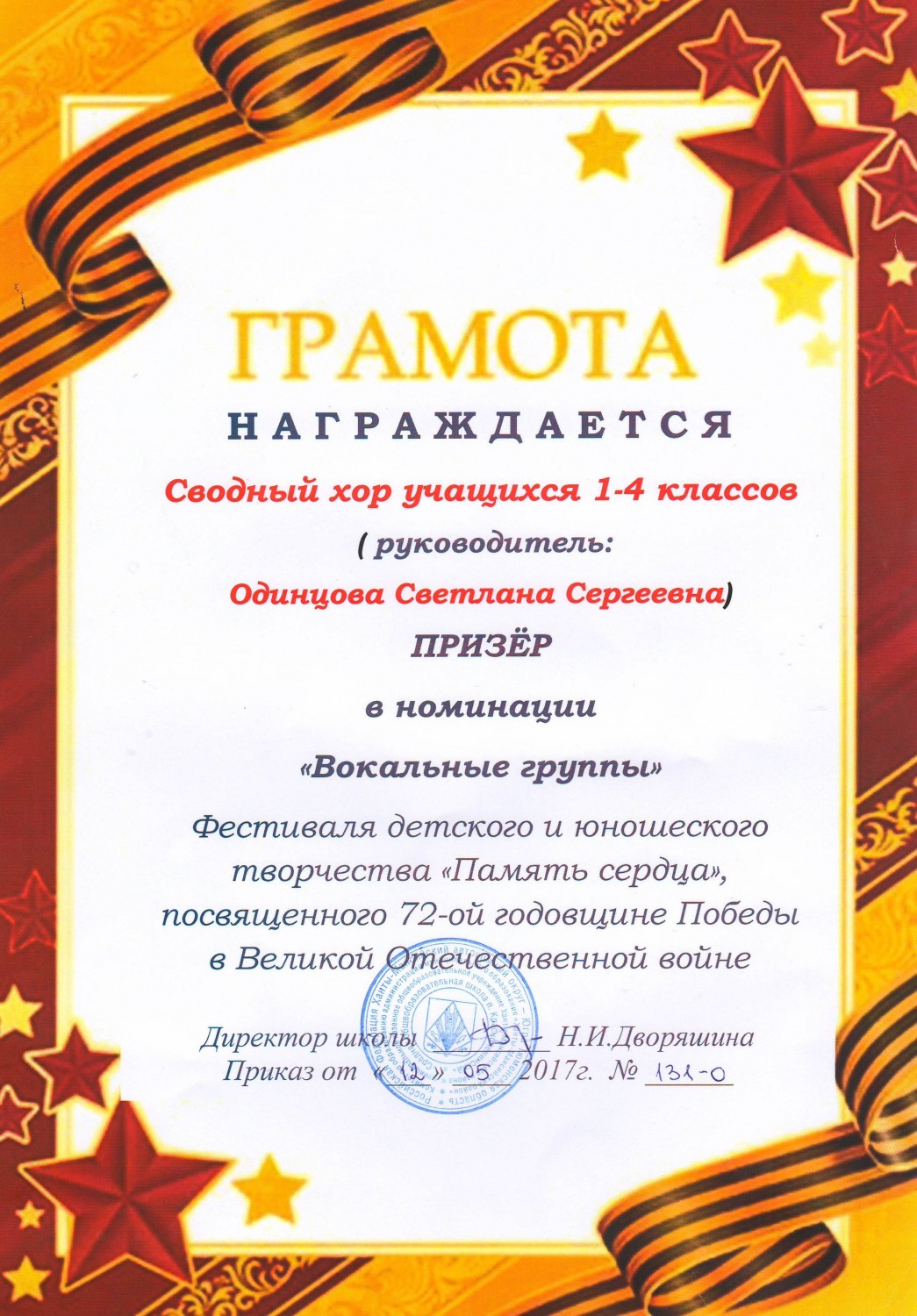 "Память сердца", посвященного 72-ой годовщине Победы в Великой Отечественной войне