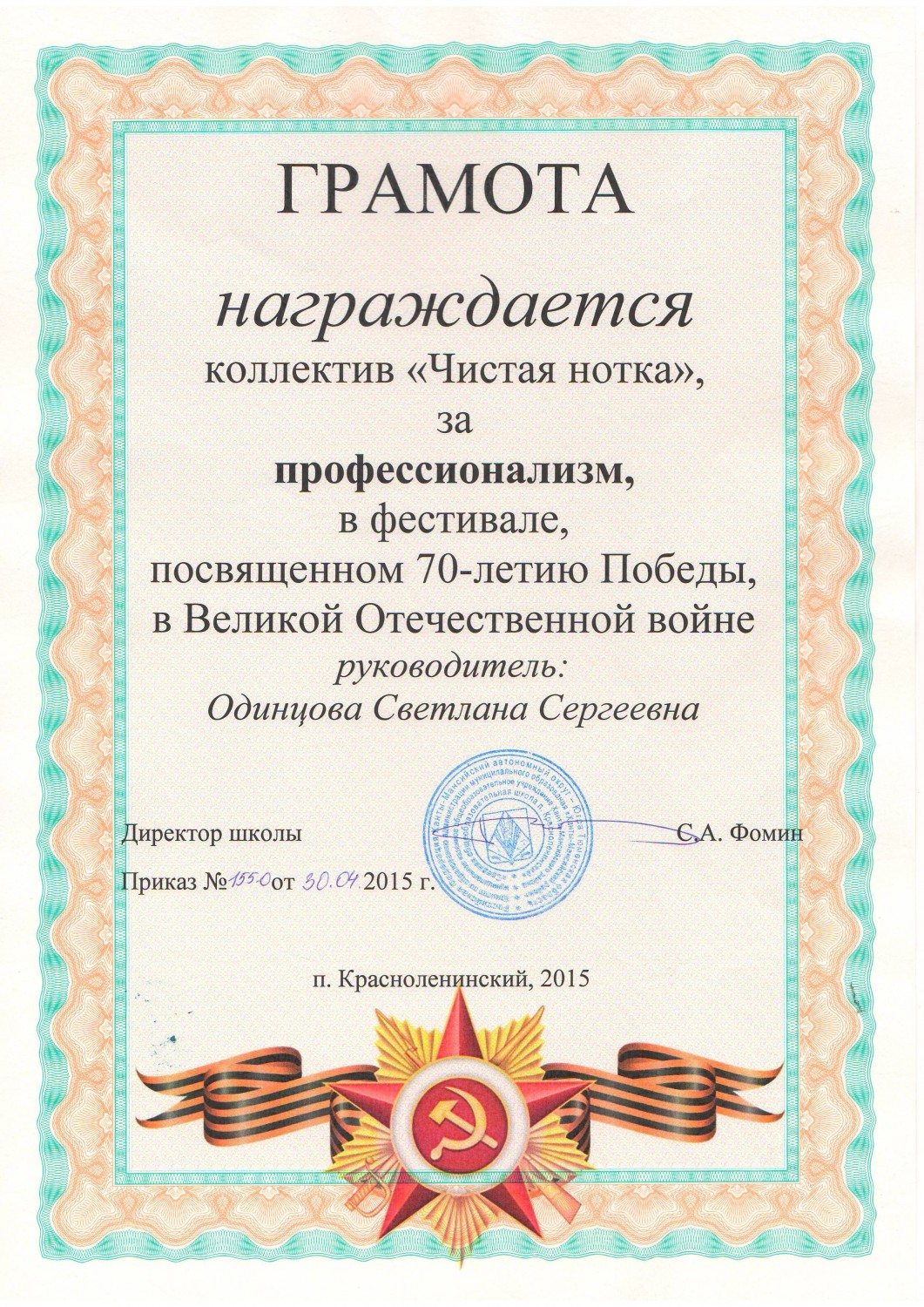 (п. Красноленинский, 2015 год)