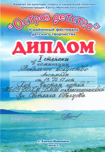 Достижения детского хорового объединения "Чистая нотка"