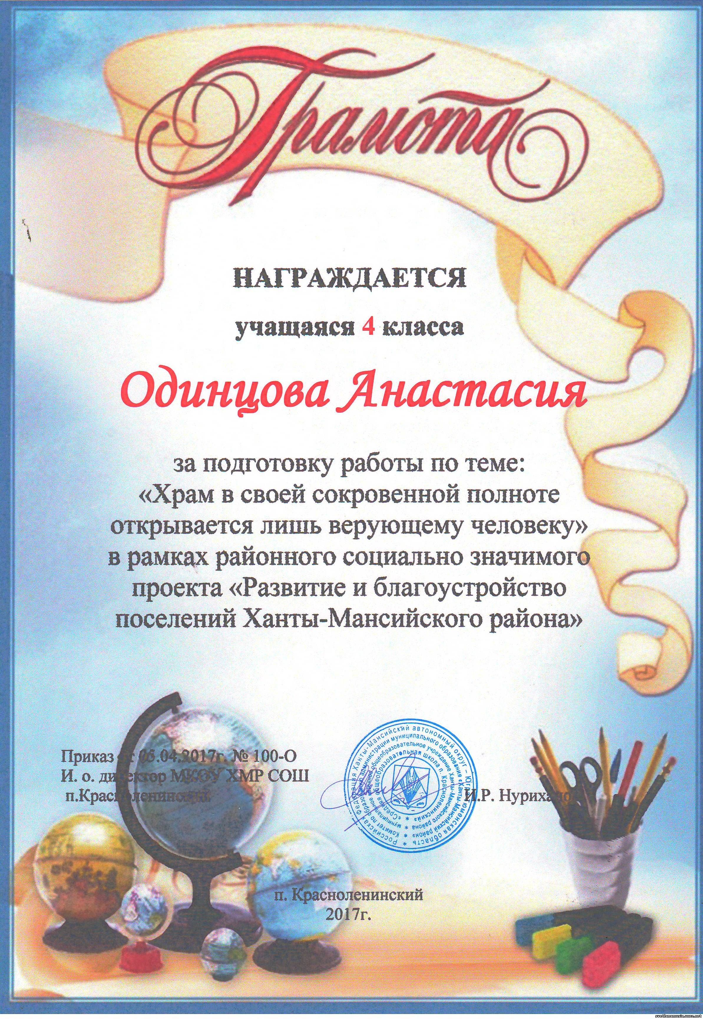 Грамота Благодарность Проект Презентация Свидетельство публикации