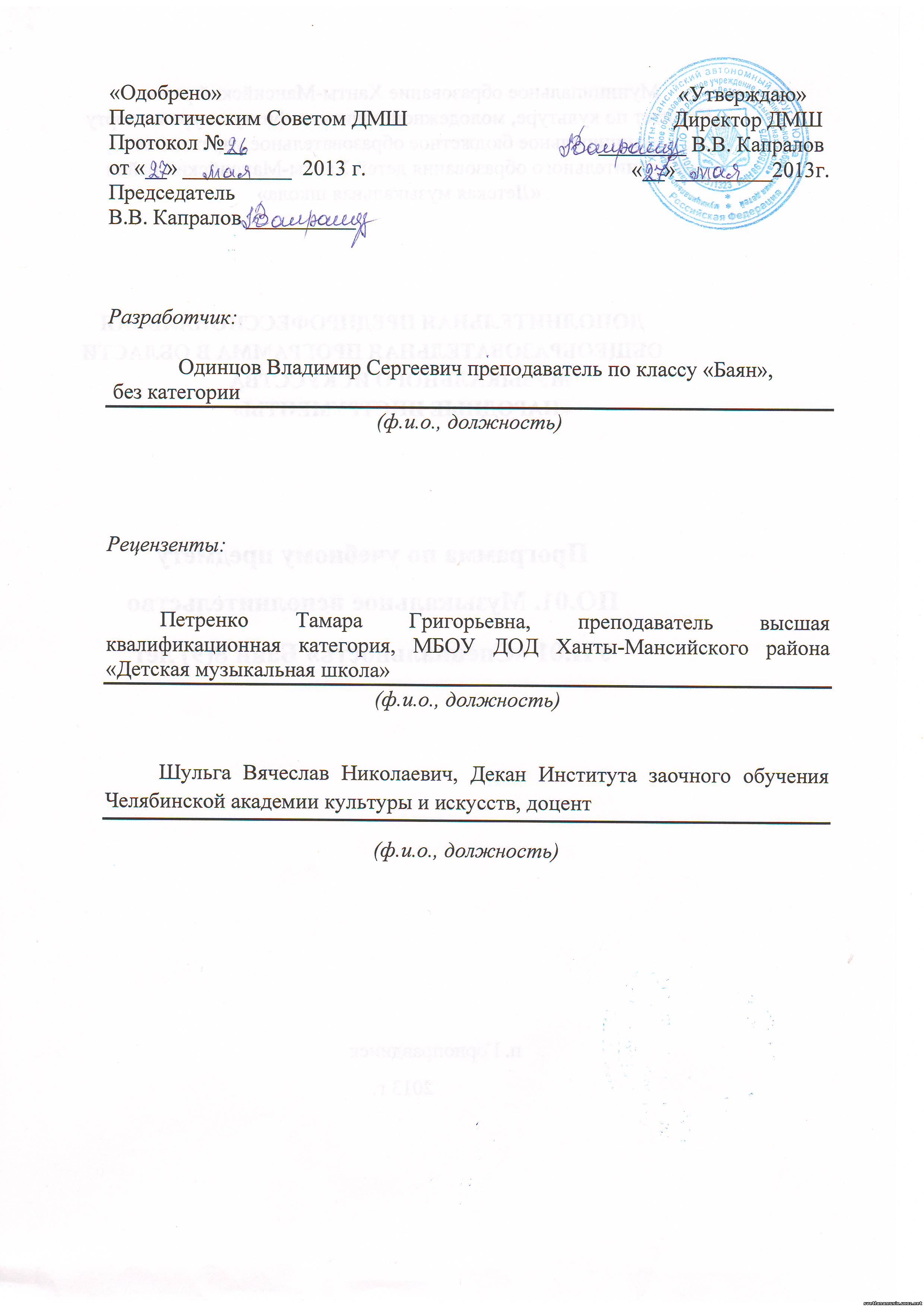 Учебные программы преподавателя по классу баяна Одинцова Владимира Сергеевича